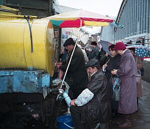 Так почти каждый день безработный Олег Копарь добывает себе на пропитание. На Центральном рынке в Бендерах его знают многие, от местных торговцев до приезжих покупателей, от бродяг до участковых милиционеров. Людям нравится, как он поет. Крытый рынок в Бендерах - это самое оживленное и живописное место в городе. За его пределами - скучная архитектура промышленного райцентра и провинциальная бедность, а здесь, под куполом торгового зала - богатство красок, запахов, широкий ассортимент "сырого и вареного" и знакомая кулинарная лексика. Здесь продавцы - психологи, чужих опознают сразу: и по говору, и по внешнему виду, и по праздному любопытству. Человека из России вычисляют быстро, и им есть что сказать заезжему гостю.
